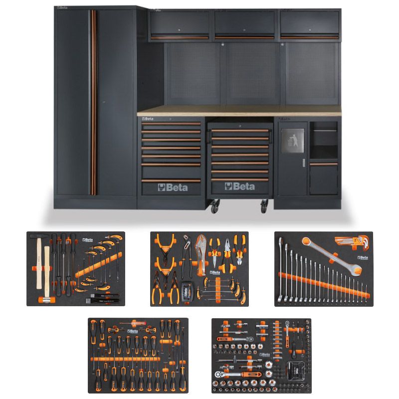 Arredo Officina 3mt Piano Legno + Armadio + 268 Utensili